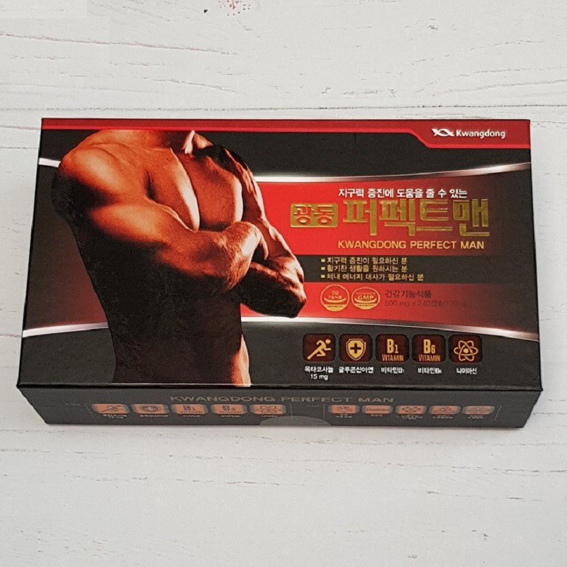 ☘️ Viên Uống Tăng Cường Sinh Lý Nam Giới (Kwangdong Perfect Man) là sản phẩm được kết hợp giữa các loại khoáng chất, vitamin có lợi cho sức khỏe và một số dược liệu tốt cho sức khỏe phái mạnh nên rất hiệu quả trong việc hỗ trợ cải thiện tình trạng yếu sinh lý, giúp bổ thận tráng dương tăng cường sức mạnh phòng the cho nam giới, đặc biệt ở những người ngoài 40 tuổi.