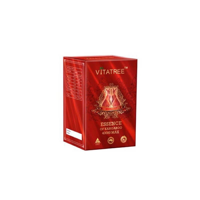 Vitatree Essence Of Kangaroo 40000 Max là thực phẩm bảo vệ sức khỏe được nhập khẩu chính hãng từ Úc sản phẩm tăng cường sinh lý nổi tiếng của hãng Vitatree, được chiết xuất từ những tinh chất tinh túy nhất của những chú chuột túi đỏ (Red Kangaroo) hỗ trợ điều trị các chứng liệt dương, yếu sinh lý, xuất tinh sớm… Cải thiện khả năng quan hệ, nâng cao chất lượng tinh trùng.