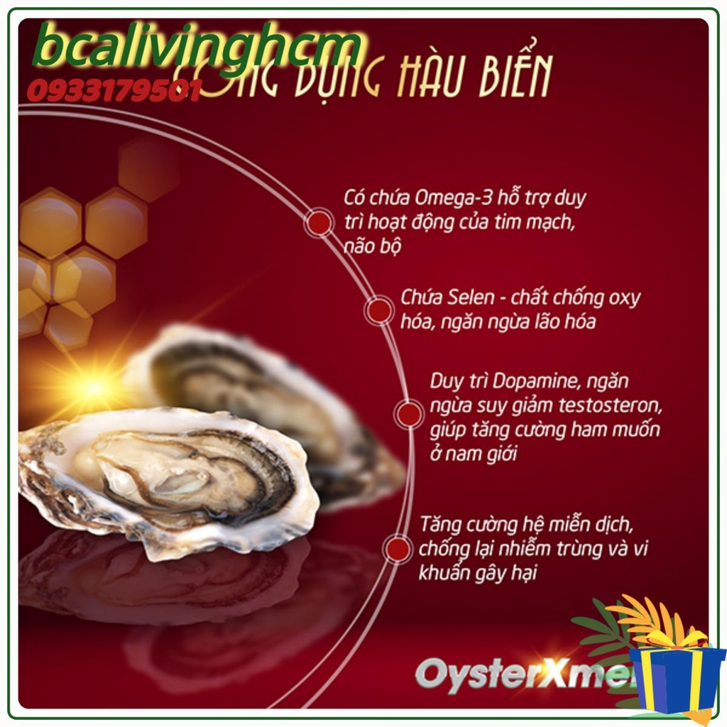 • Chiết xuất “Hàu Biển” cùng hàm lượng kẽm dồi dào dùng đặc tr chứng “rối loạn cương dương”.