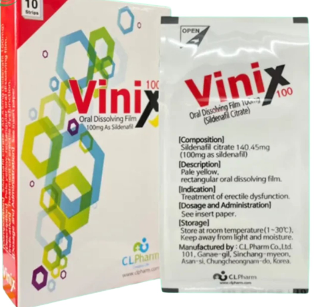 Công dụng: Tem ngậm Vinix 100 điều trị rối loạn cương dương ở nam giới (Hộp 10 phim) tăng số lần và kéo dài thời gian quan hệ cho những bệnh nhân bị mắc chứng xuất tinh sớm, yếu sinh lý. Thuốc có thể dùng để điều trị bệnh rối loạn cương dương.