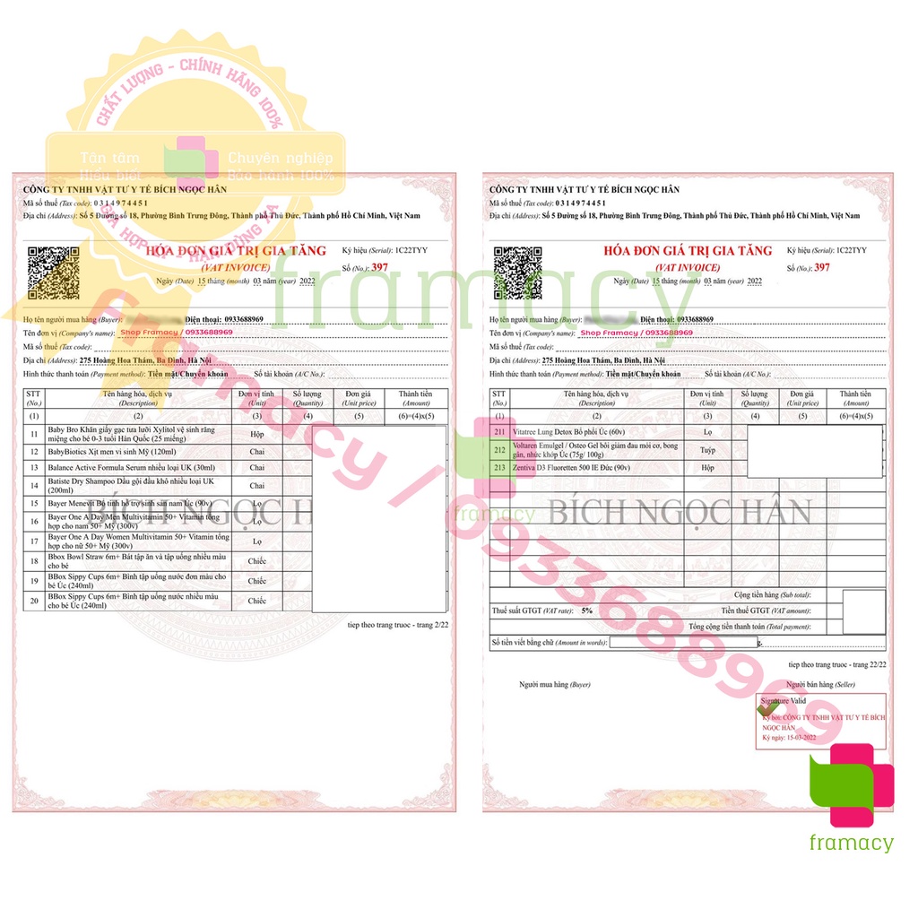 • Framacy chuyên bán sỉ và lẻ các sản phẩm chăm sóc sức khỏe 100% chính hãng với đủ hóa đơn, giấy tờ, nếu không đúng cam kết đền 100% đơn hàng. Hàng chúng tôi có hạn sử dụng xa, chất lượng, giá hợp lý. Đội ngũ tư vấn và phục vụ tận tâm, hiểu biết, chuyên nghiệp