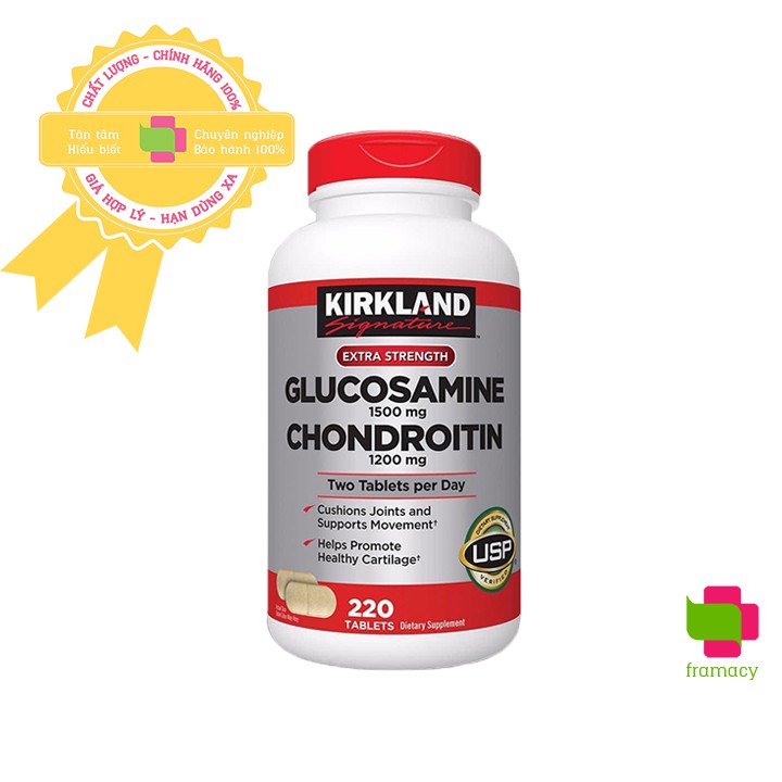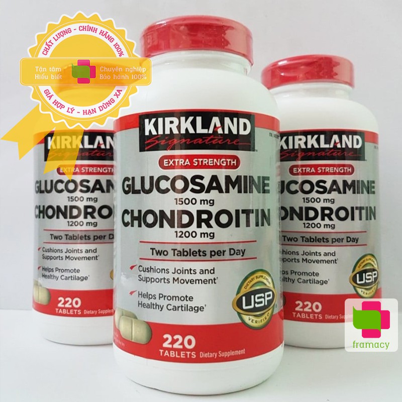 Với các thành phần hợp chất tự nhiên có trong cơ thể, Glucosamine và Chondroitin mang lại những tác động mạnh mẽ cho tình trạng sức khỏe xương khớp. Các hợp chất này đã được nghiên cứu và chứng minh rằng chúng có những tác động trực tiếp trong việc tái tạo sụn khớp, duy trì tình trạng của xương khớp và các mô liên kết trong trạng thái tốt nhất. Đảm bảo cho quá trình vận động của cơ thể được diễn ra linh hoạt, nhịp nhàng như ý muốn. Kirkland Glucosamine 1500mg Chondroitin 1200mg là một trong những dòng sản phẩm hỗ trợ sức khỏe xương khớp được sử dụng rộng rãi trên thị trường Mỹ và các nước trên thế giới. Sản phẩm được sản xuất bởi Kirkland thương hiệu thực phẩm bảo vệ sức khỏe hàng đầu trên thế giới. Kirkland Glucosamine Chondroitin là sự kết hợp giữa 2 thành phần hợp chất cần thiết cho xương khớp và hỗ trợ sức khỏe xương khớp theo cách tốt nhất.